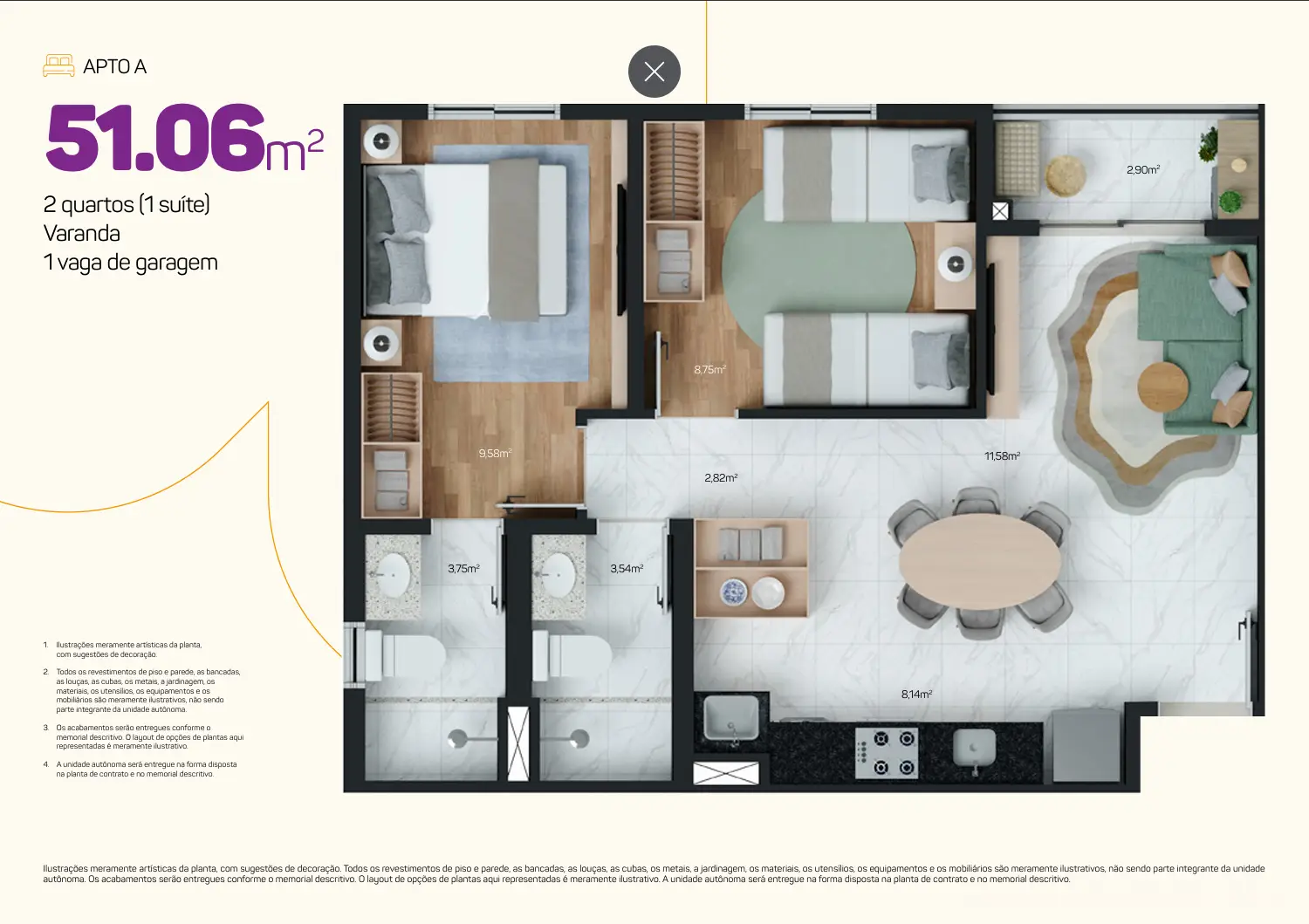 * O preço exibido nesta página é o menor da tabela de vendas do mês, por tipologia, cada apartamento em um empreendimento específico tem valores diferentes.. Quando exibido em https://mylar.com.br/, o preço exibido pode não estar mais em vigor, pois a Construtora ou Incorporadora ou Imobiliária ou proprietario podem alterar os preços dos imóveis a qualquer momento sem prévio aviso. É necessário também verificar a disponibilidade dos imóveis para comercialização diretamente com corretores, pois a unidade pode não mais estar à venda. As despesas cartorárias de escritura e registro, bem como as relacionadas ao financiamento, além do ITBI, não estão incluídas no preço do site e serão de exclusiva responsabilidade do adquirente. Para maiores detalhes, consulte sempre um corretor. Todas as imagens utilizadas neste material de imóveis na planta são meramente ilustrativas, não fazendo parte de nenhuma oferta de produto ou serviço. Possíveis alterações de projeto serão executadas de acordo com o memorial descritivo do empreendimento à venda. No caso de fotos de imóveis decorados, perspectivas artísticas e plantas com sugestão de decoração, os revestimentos a serem utilizados na construção estão especificados no memorial descritivo. Os móveis e equipamentos têm dimensões comerciais. Objetos de decoração, pisos, rodapés, louças, metais, molduras, forros e sancas de gesso e pontos de iluminação são sugestões de decoração, não fazendo parte do contrato de aquisição, nem de qualquer oferta de produto ou serviço. A contratação de serviços de uso comum, caso citadas neste material, depende de decisão dos condôminos em reunião condominial, que tem poder de não aderir aos serviços ou cancelar serviços previamente oferecidos. Com relação aos diferenciais citados, nem todos os diferenciais anunciados se aplicam a todas as unidades autônomas, ainda que de igual tipologia. Para informações adicionais, consulte o memorial descritivo e um corretor de imóveis. a