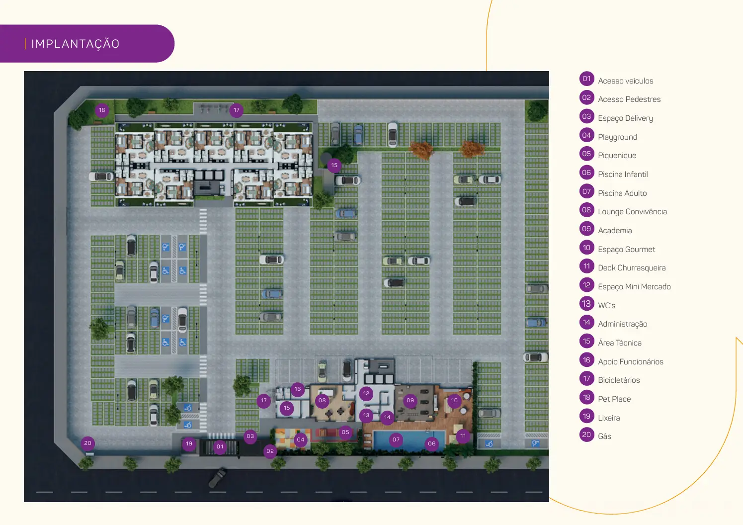 • Vagas 243 vagas privativas (1 vaga por apartamento)