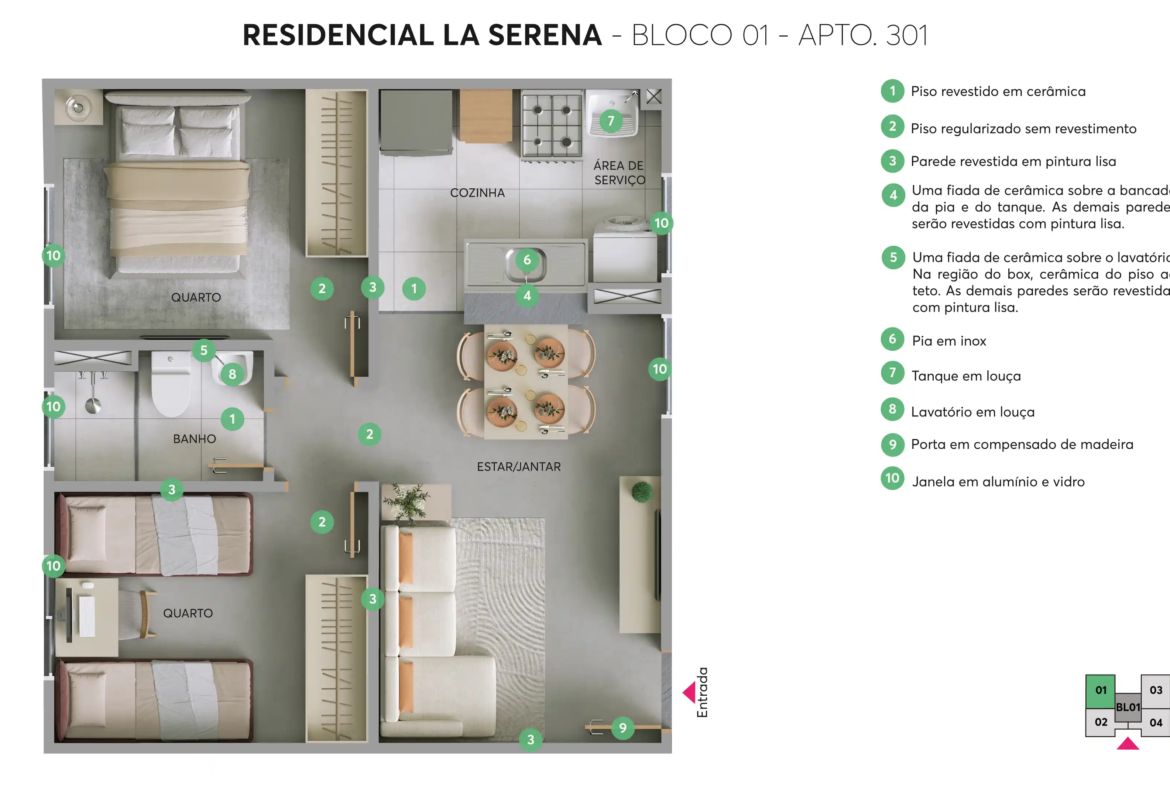 * Menor valor na tabela em: RESIDENCIAL LA SERENA - BLOCO 05 - 2 Q - APTO 403 em 19/01/2026 (Consulte valores e promoções vigentes com o corretor)